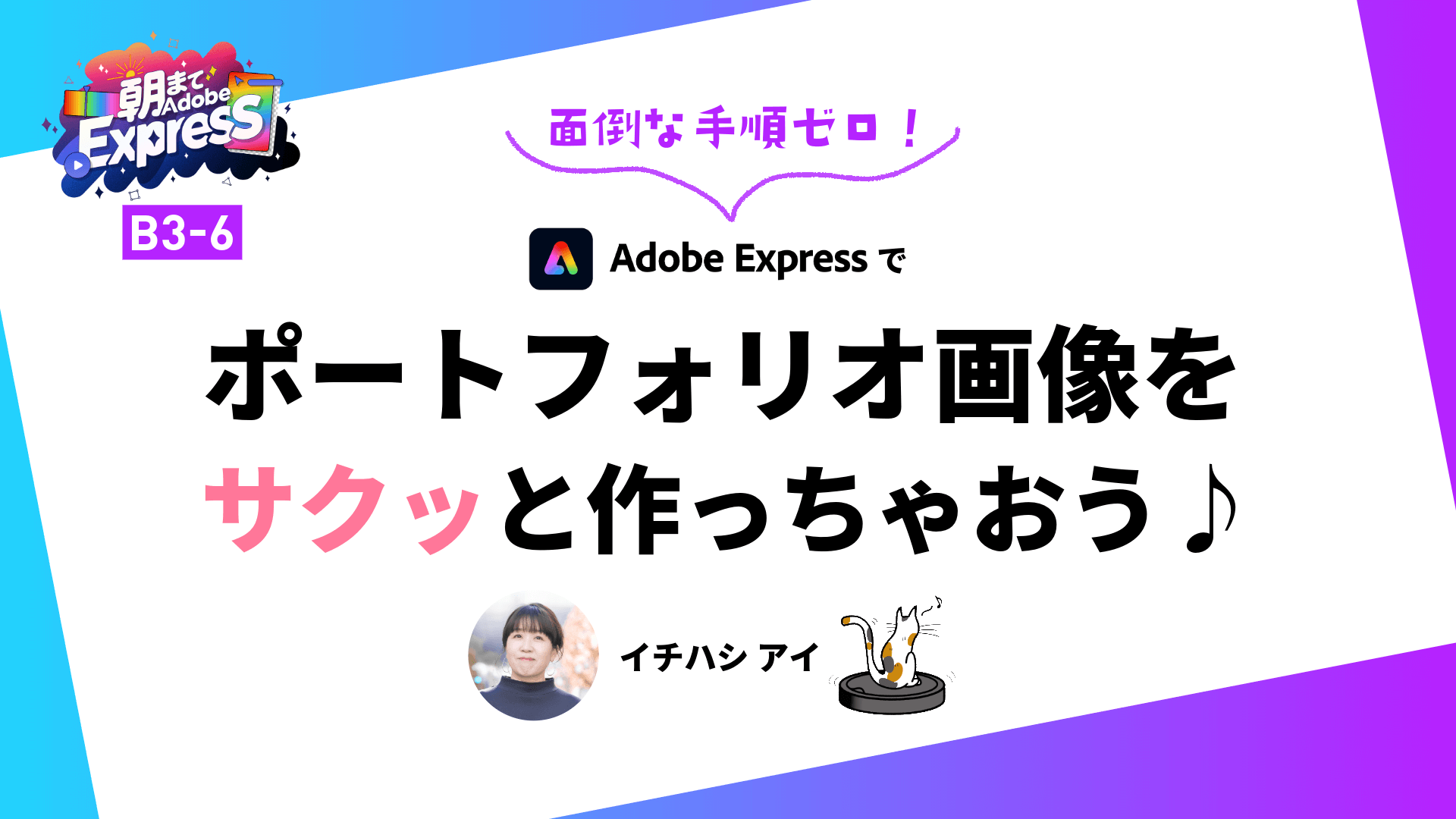 | B3-6 | 面倒な手順ゼロ!Adobe Expressでポートフォリオ画像をサクッと作っちゃおう♪ | イチハシアイ | ||