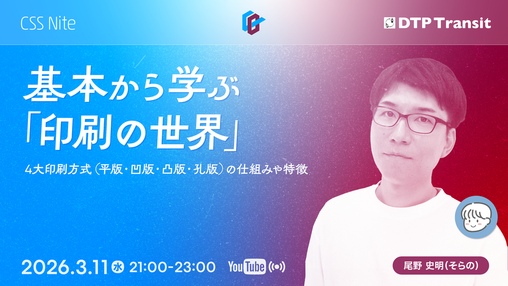 印刷と向き合うための土台となる知識として、4大印刷方式(平版・凹版・凸版・孔版)それぞれの仕組みや特徴を、尾野 史明(そらの)さんに解説いただきます。